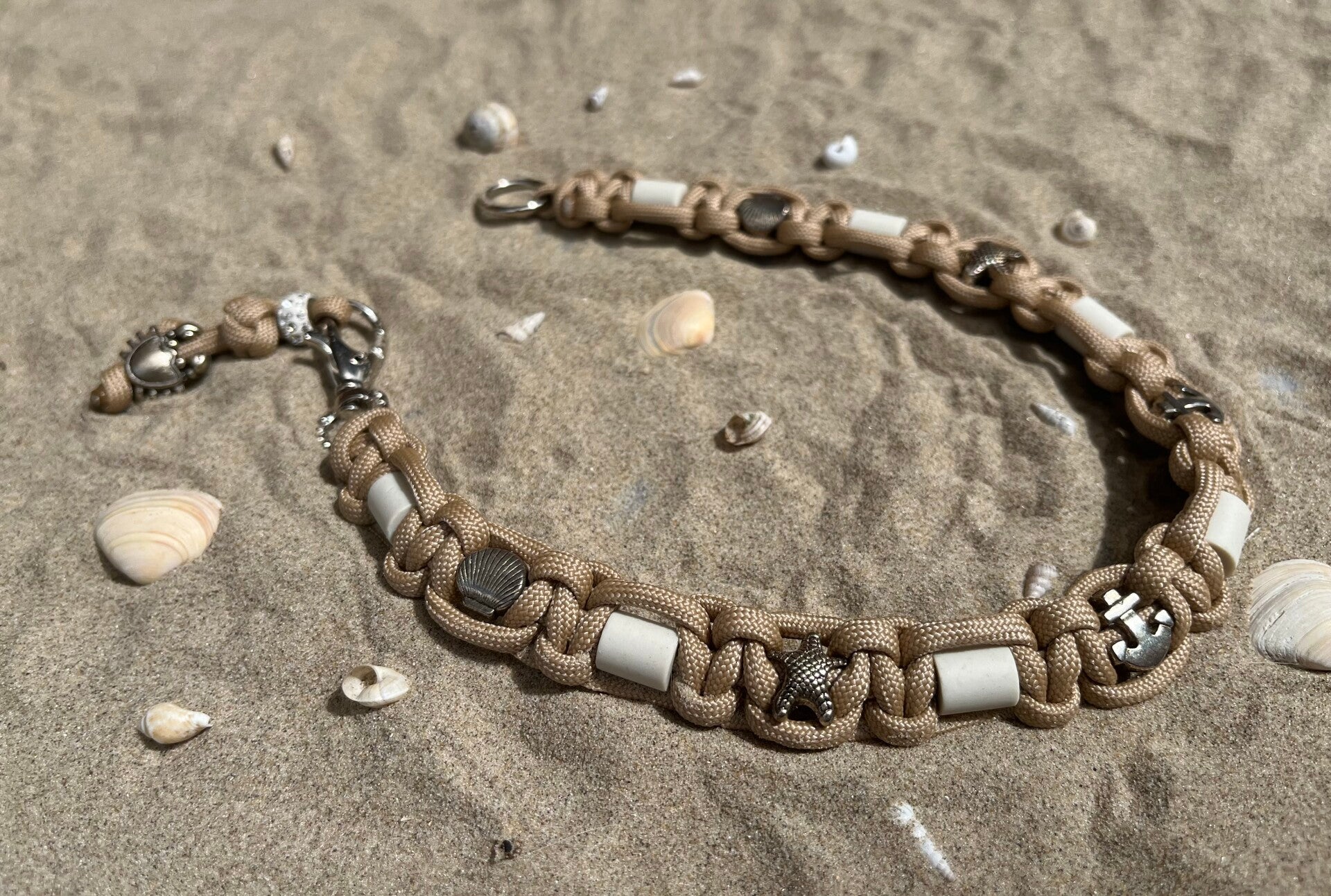 Wunderschöne Schmuckkette im Farbton Cappuccino mit EM Keramik und maritimen Schmuckelementen. Am Ende der Kette befindet sich eine (abnehmbare) Quaste.