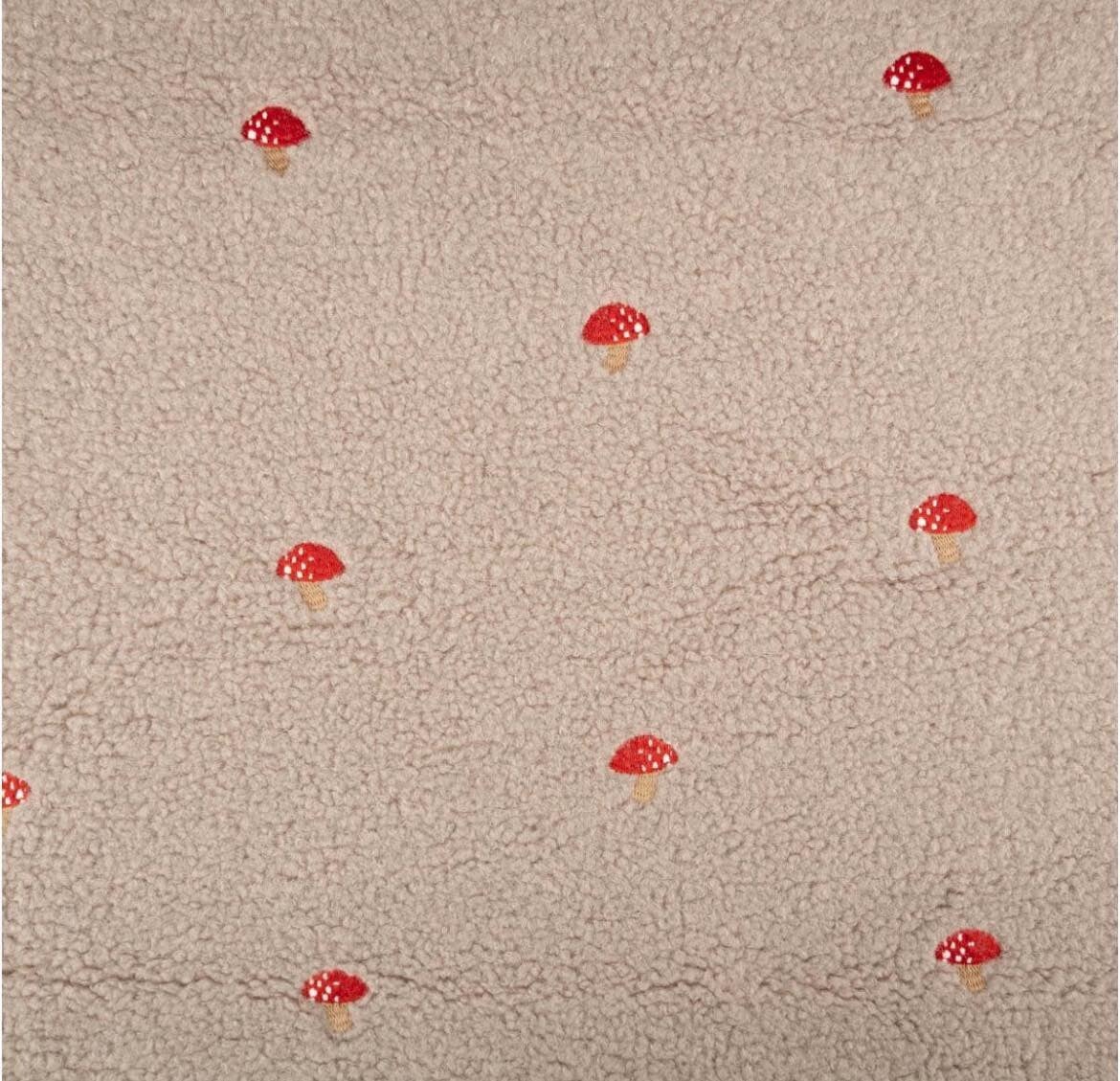 Wunderschöner Jumper aus kuscheligem Baumwoll-Teddy mit bezaubernden, gestickten Pilzen, Anfertigung auf Maß.